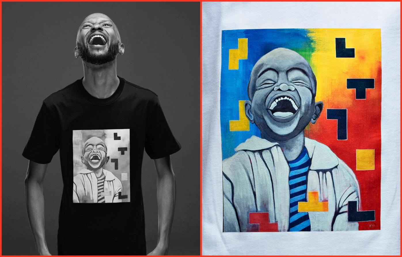 In 2020, Kabelo started printing his artwork on t-shirts. Not as merch — but as movement.